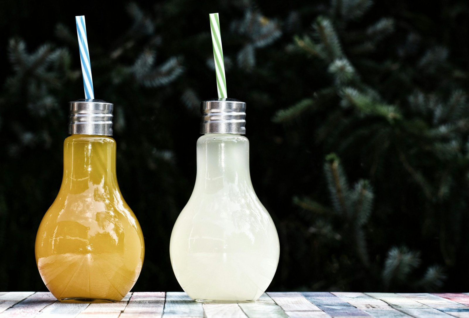 Juice bottles are commonly used by juice manufacturers to package and distribute a wide variety of fruit and vegetable juices. These juices can be 100% pure juice or may contain added sugars, preservatives, and flavorings depending on the brand and type of juice.
